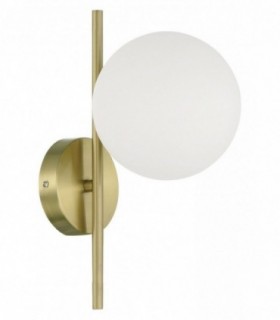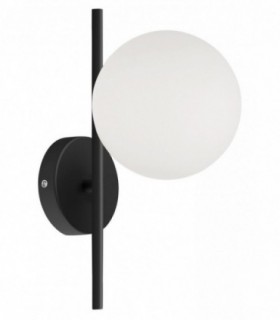 Aplique con una luz apta para espacios domésticos de estilo art-deco. De diseño sobrío y elegante, está realizada en cuerpo metálico con pantalla esférica de cristal blanco y disponible en dos colores; negro y latón...