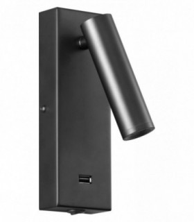Aplique fijo con fuente de luz LED direccional de color negro. Ideal para colocar en todo tipo de habitaciones interiores. Se coloca mediante tornillos.