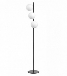 Lámpara de pie con cuerpo metálico negro y portalámparas color medalla, es ideal para una decoración del hogar llena de estilo y de aspecto sutilmente industrial. Lo complementa una pantalla cilíndrica en cristal....